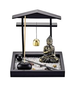 Jovivi Zen Garden Set Buddha Statue, Mallet & Rocks and Crystals & Incense Stick Holder Bowl & Wooden Display Tray for Yoga Meditaion Home Table Decor Gift