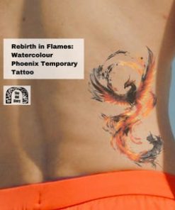 Vintage Watercolor Phoenix Rebirth Temporary Tattoo Sticker, Large Fantasy Body Art, for Tattoo Love