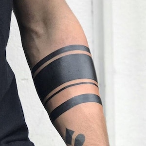 Black Armband Temporary Tattoo: Realistic Design, Lasts 1-5 Days (x2 A4 Sheets) | This black armband temporary tattoo features a realistic design for a bold and modern look. Easy to apply, it lasts 1–5 days and is perfect for short-term style.