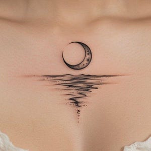 Crescent Moon Reflection Tattoo Design | Minimalist Chest Tattoo (Digital Download PNG File)