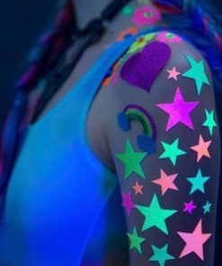 Star Glow Body Art Stickers- Neon Stars, UV Black Light, Reusable, Star Tattoo, Glow Costume, Stripp
