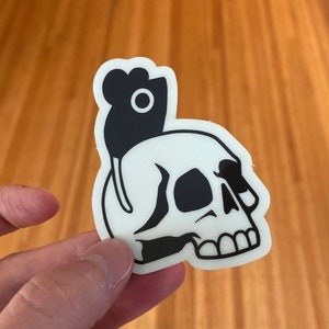Glow in the dark skull and mouse sticker | This glow in the dark sticker features a skull and mouse design for a spooky look. Durable and easy to apply, it’s perfect for decoration.