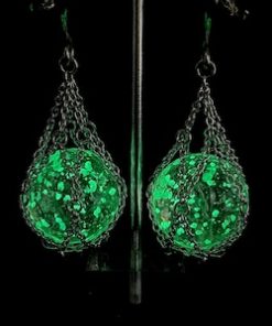 GLOW in the DARK Glass Sphere Ear Hangers 14g-00g Weighted Ear Gauges