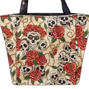 Handmade Skull Rose Tattoo Cotton Tote Bag – Glow in the Dark | This handmade cotton tote bag features a skull rose tattoo design that glows in the dark. Durable and stylish, it’s perfect for everyday use with a gothic twist.