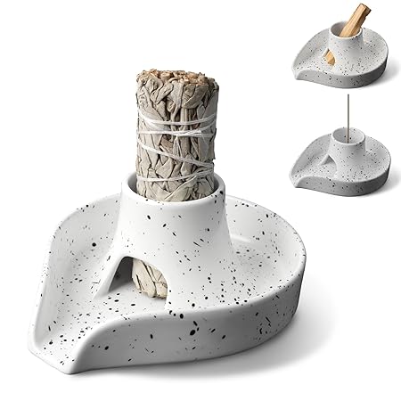 Incense Holder Palo Santo Holder White Sage Smudge Holder Smudge Stick Bowl Ceramics Burning Bowl for White Sage/Palo Santo Stick/Incense,Easy to Clean 3 in 1 White Sage Bundle Smudge Bowl