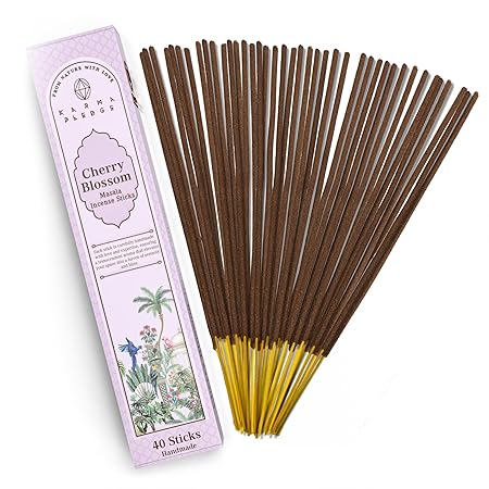 Incense Sticks, Cherry Blossom Incense, Made with Natural Ingredients, Hand Rolled Aromatic Masala, 40 Stick Pack, 45-60 Minute Burn Time, Best for Home Fragrance, Meditation, Yoga, Spiritual Healing
