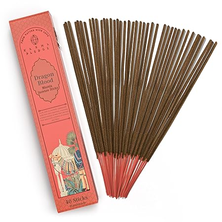 Incense Sticks, Dragons Blood Incense, Made with Natural Ingredients, Hand Rolled Aromatic Masala, 40 Stick Pack, 45-60 Minute Burn Time, Best for Home Fragrance, Meditation, Yoga, Spiritual Healing