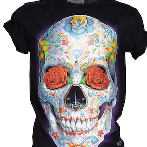 T-shirt 4D Rock Chang Original Skull Piercing Tattoos Floral Elements Glow in the Dark Unisex | This 4D skull tattoo T-shirt features floral elements with glow in the dark effects. Designed for unisex wear, it combines edgy style with comfort.